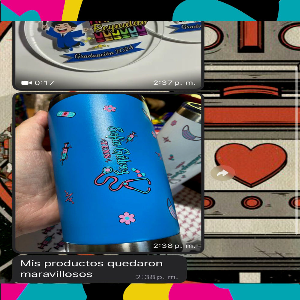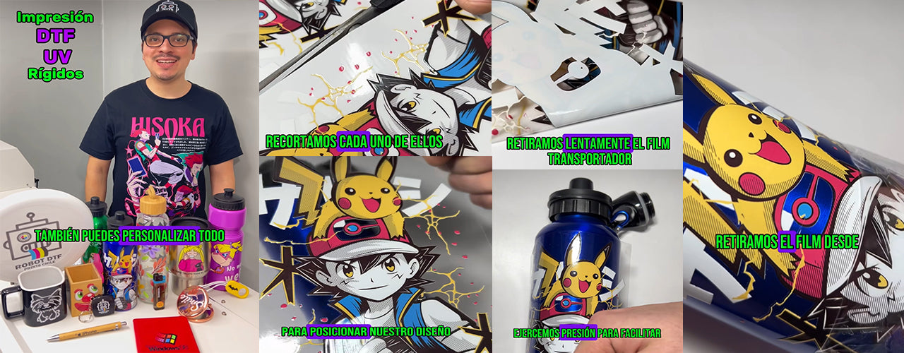 La técnica de DTF UV (Direct to Film UV) es diferente del DTF textil y está diseñada para personalizar superficies rígidas o semirrígidas lisas, no textiles. Usa tintas UV y una película especial que se transfiere mediante presión, sin necesidad de maquina adicional, su aplicación es similar a un sticker.