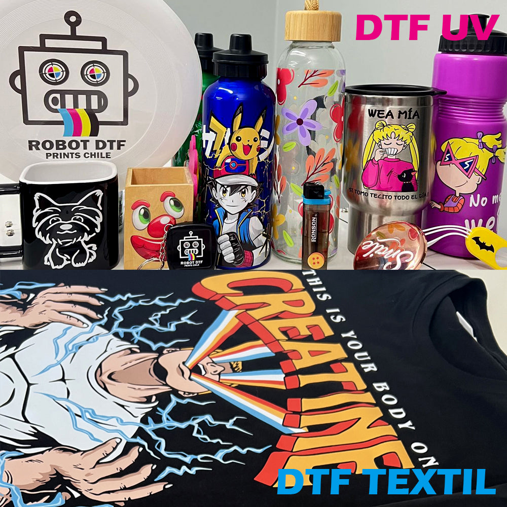 DTF UV para productos rígidos o DTF TEXTIL para telas textiles.